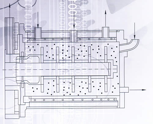 該機(jī)是連續(xù)操作的全密閉式的濕法研磨分散機(jī)械。送料泵將經(jīng)過(guò)預(yù)分散、處理的液固混合物由筒體進(jìn)料端輸入簡(jiǎn)體內(nèi)和預(yù)先裝入的研磨球一起被高速旋轉(zhuǎn)的分散片所相切,使物料中的固體顆粒及聚集體與研磨球產(chǎn)生劇烈的碰撞和剪切。迅速將物料顆粒磨細(xì)和分散聚集體,在短時(shí)間內(nèi)達(dá)到極細(xì)度和很窄的粒度分布范圍,研磨分散后的物料通過(guò)動(dòng)態(tài)分離器及篩圈流出,而研磨球仍被留在簡(jiǎn)體內(nèi)。